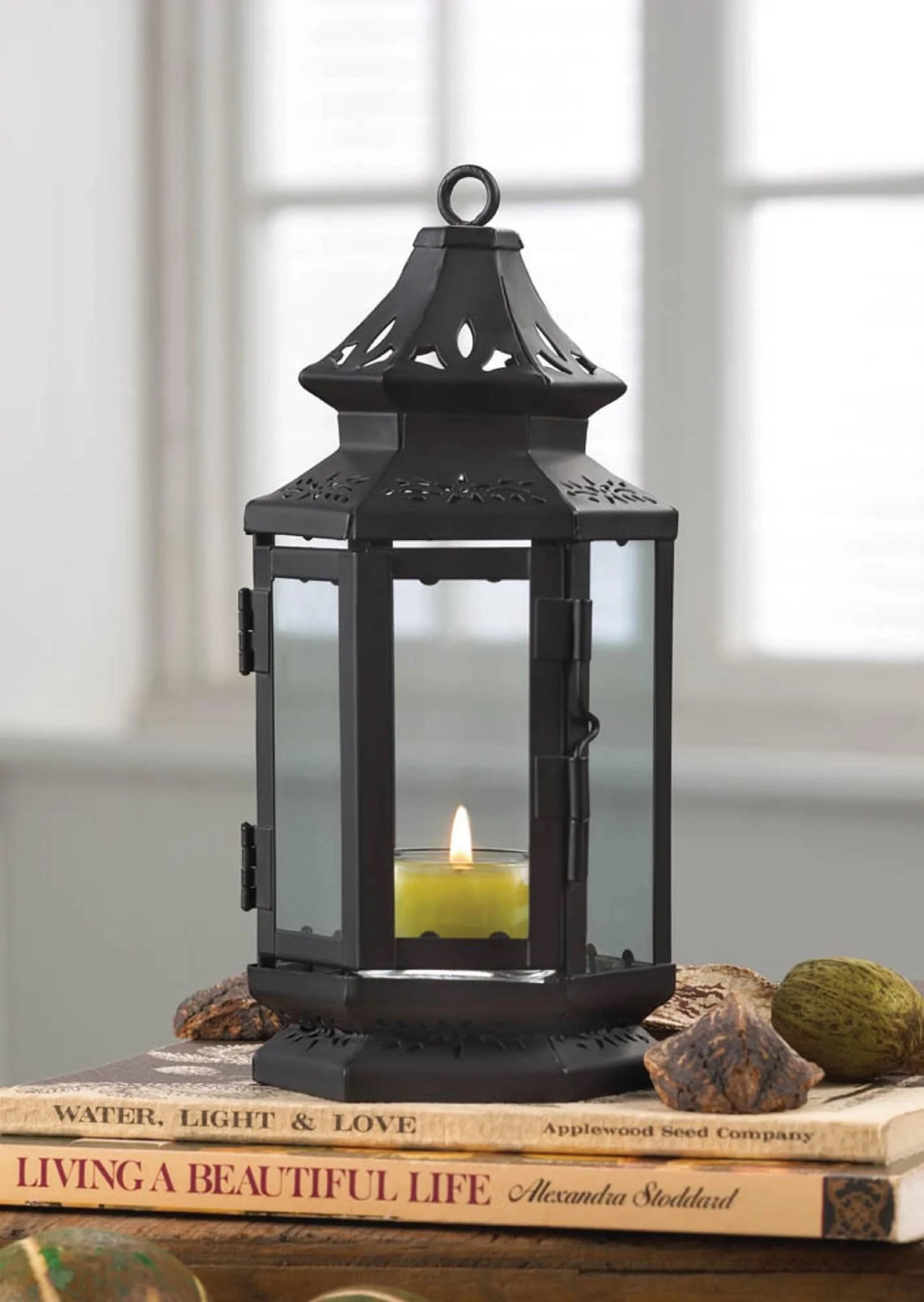 • This beautifully crafted lantern made of iron and glass is both durable and stunning.