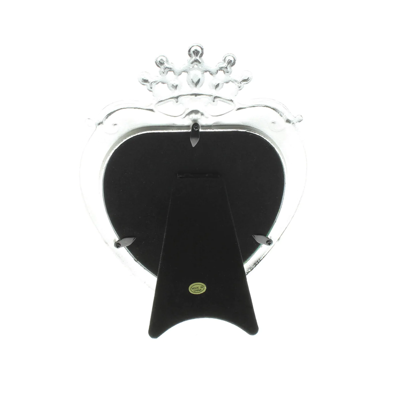 • Give the special photo that’s closest to your heart a special frame! This beautiful pewter heart is topped with a rhinestone crown, fits a 5 inch by 5 inch photo, and has an easel back for tabletop display.
