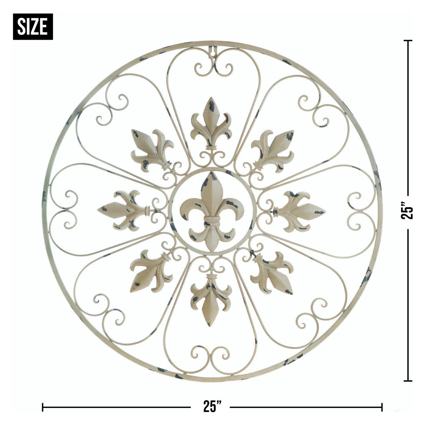 Round Fleur De Lis Wall Art Decor - Elegant Circular Metal Wall Hanging Round Fleur De Lis Wall Art Decor - Elegant Circular Metal Wall Hanging