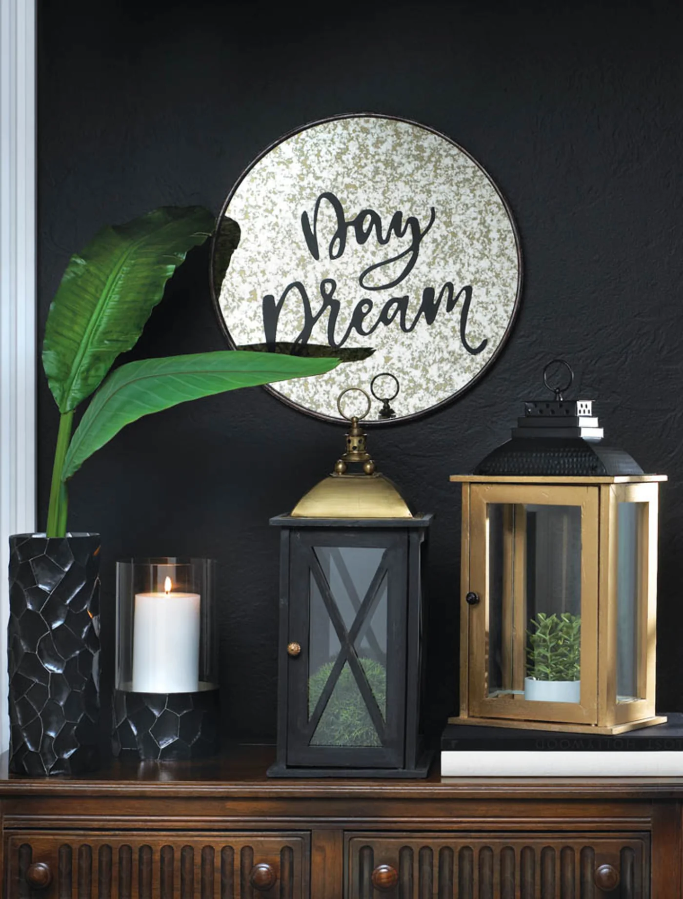 The Monterey “Day Dream” Decorative Mirror is a unique wall decoration made from iron and mirror. Its industrial-style base and feminine cursive print creates a stunning contrast.||Contemporary mix of iron and mirror material. Neutral speckled antique design; easy to coordinate with any décor.