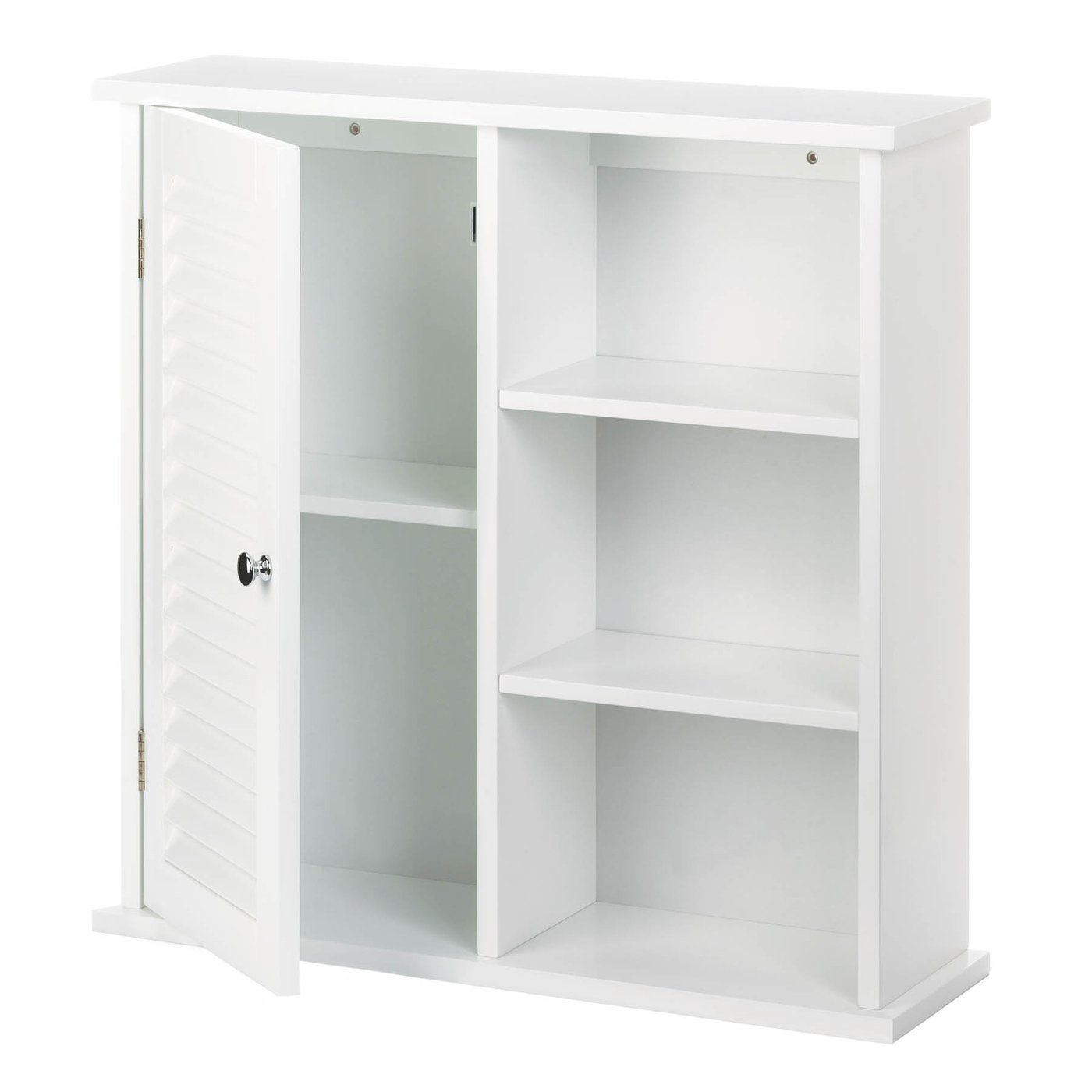 For extra storage place this cabinet in a bathroom, closet, mud room, or anywhere else you require. The white color and design of the cabinet will seamlessly fit into any décor style. Use for toiletries, make-up, linens, as a medicine cabinet, or display figurines or small trinkets on the shelf while hiding away other items behind the door. Made of MDF wood the wall cabinet is designed for easily assembly and mounting to the wall. Weight 19.60 lb . 23.50" x 7.00" x 23.50. Wood – Mdf. UPC Number: 849179044213. To clean your wall cabinet; dust lightly, or wipe with damp cloth as needed.