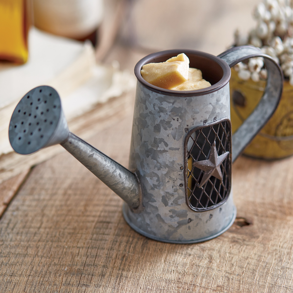 Detailed in early American style, our Star Watering Can welcomes rustic garden accents. Drop your favorite scent and experience a delightful aroma and warm glow of the light that shines through. Comes with a 25-watt short bulb. Wax potpourri is not included. Electrical items have a small on/off switch on the cord.