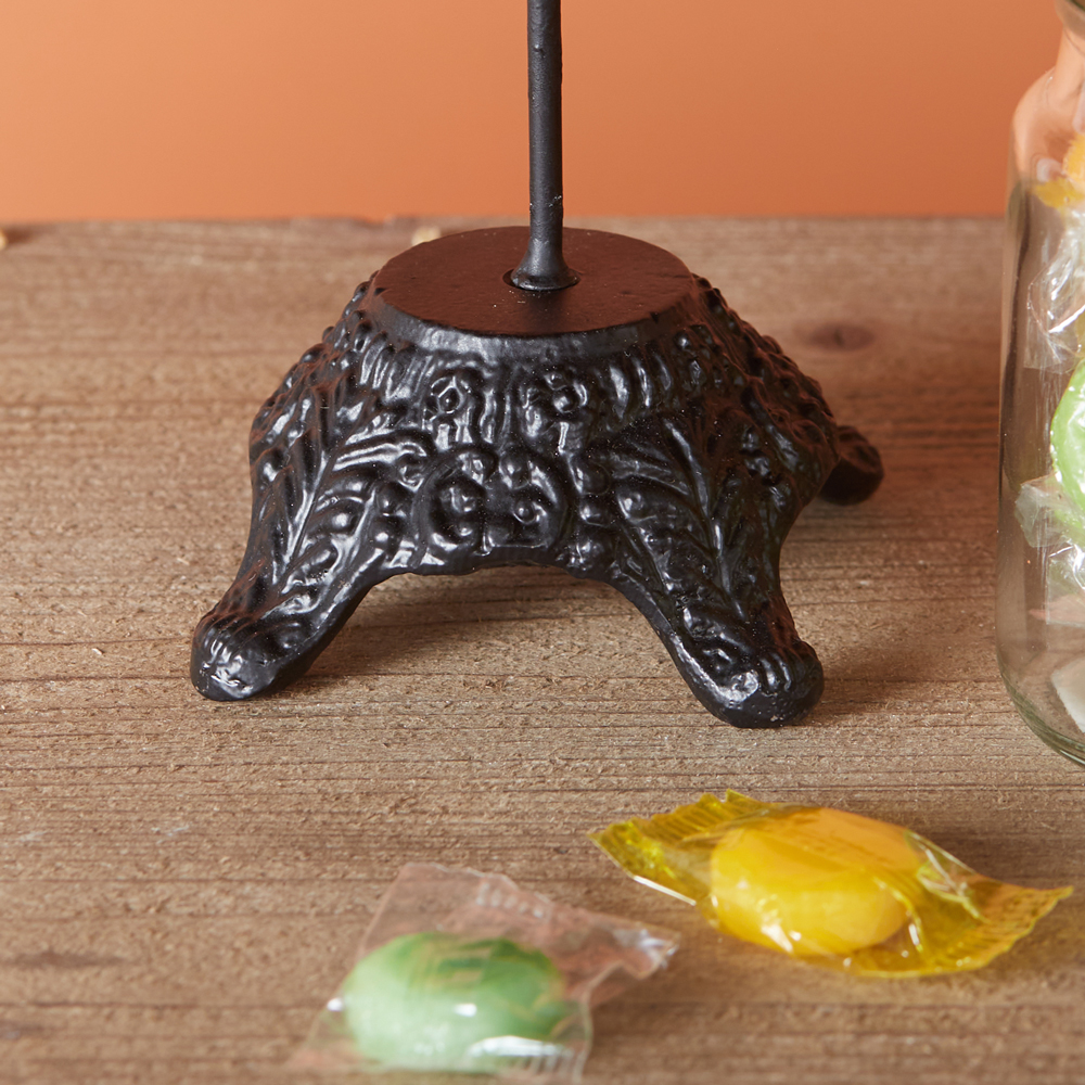 Let this Wicked Witch's Hat stay for a spell. It will bring a spooky touch into your home this Halloween. It is made of metal and sits on a stand for display.