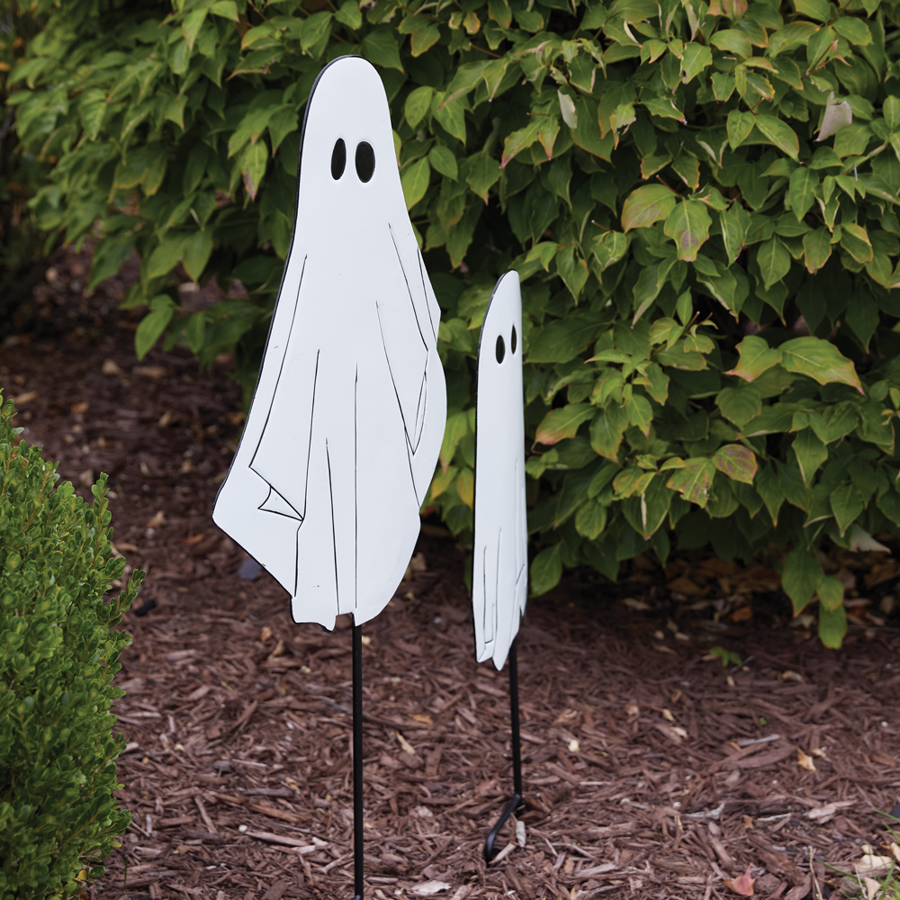There's nothing spooky about these adorable ghost. Place in the yard before Halloween to create the ultimate trick-or-treat stop. Stakes are made of metal. Smallest stake measures 9½''W x 34½''H.