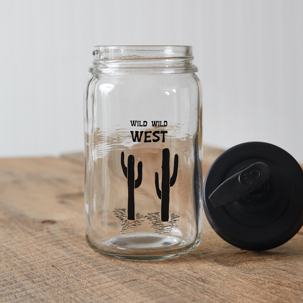 Lasso up this fun soap dispenser for a touch of the Wild West. Holds one pint of liquid. Clear Glass. Features a black pumper.