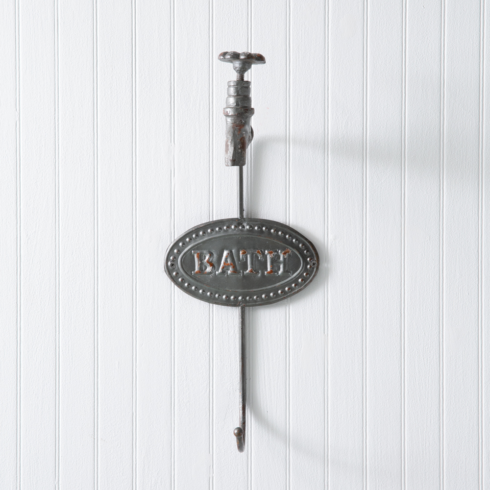 Hang up the stress from a long day and relax in the bath. This large bath hook is ideal for hanging towels or a robe. Item is fashioned of cast iron. To hang, use two screws.
