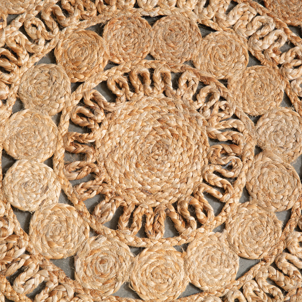Hand-braided from jute fibers, this round 5 foot rug features neutral colors, making it a perfect base for any room. Our rugs add an element of warmth to a space that brings together a room.